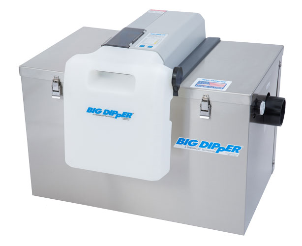 They are often designed to be installed unobtrusively in your commercial kitchen, in a corner or underneath a sink. The upfront cost of these units can be higher, but kitchen staff can handle the minimal maintenance required to keep these units running smoothly. You won’t have to pay regular pumping fees, saving your business operating costs over the long term. Plus, the compact design of Big Dipper units means they can fit in tight confines and makes them easy enough to install as a quick DIY project. Just attach the pipes, plug in and go.