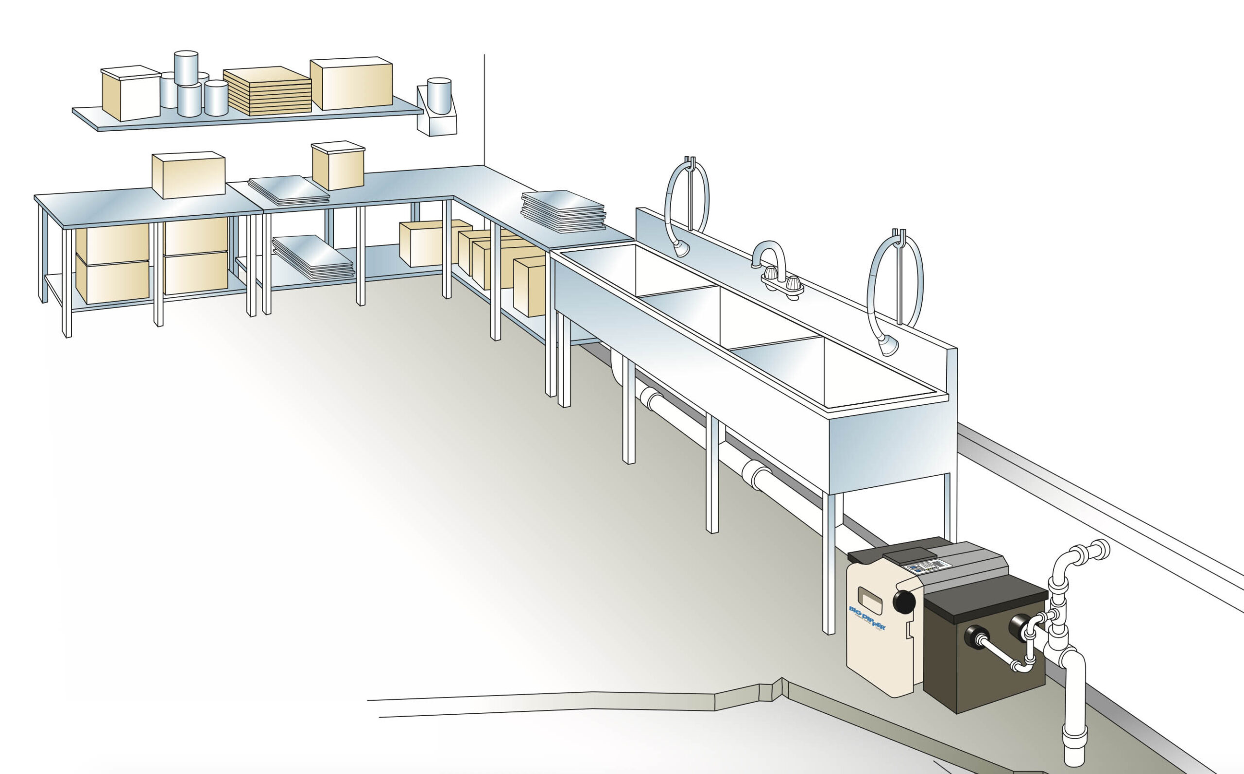 Hydromechanical grease interceptors (commonly called grease traps) are usually installed underneath the 3 compartment sink or in the floor of the kitchen. They trap grease over time and need to be pumped frequently, sometimes even weekly. They may be less expensive upfront, but they cost more to maintain due to frequent cleaning. If they aren’t maintained properly, they may stop holding grease and put your commercial kitchen at risk for a blockage.